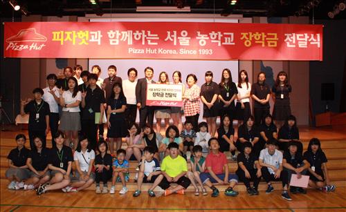 (서울=연합뉴스) 오예진 기자 = 한국 피자헛은 청각장애학생을 위한 국립특수학교인 서울 농학교 재학생 58명에게 총 900만원의 장학금을 전달했다고 27일 밝혔다.
