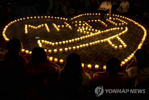 | △ 말레이항공 실종기 탑승자를 추모하기 위해 지난해 8월 중국 베이징에서 열린 촛불행사. 2015.7.27 (AP=연합뉴스 자료사진) |