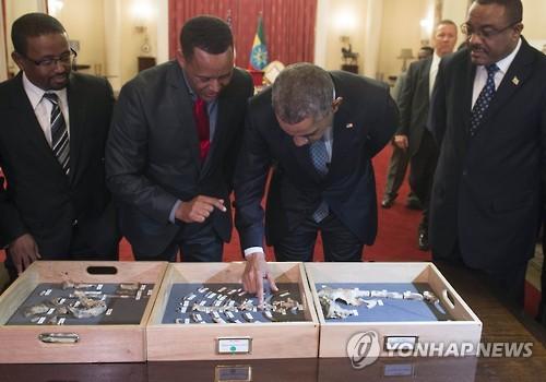 오바마, 에티오피아서 인류조상 '루시' 직접 만져