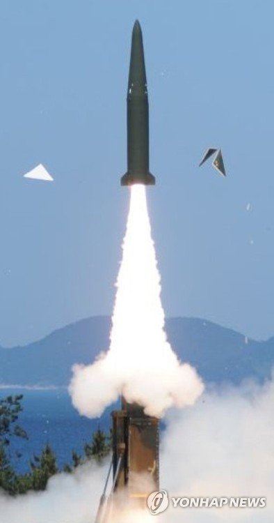 | △ 軍, 사거리 500㎞이상 탄도미사일 개발 (태안=연합뉴스) 우리 군이 성공적으로 개발 완료한 사거리 500㎞ 이상의 탄도미사일(현무-2B)이 3일 충남 태안의 국방과학연구소(ADD) 안흥시험장에서 성공적으로 발사되고 있다. 이는 지난 2012년 10월 한미 미사일지침 개정에 따라 한국군의 탄도미사일 사거리를 늘리는 데 합의한 이후 2년8개월여 만이며 중부권 이북지역에서 발사하면 북한 전역의 핵과 미사일 기지를 타격권에 둘 수 있기 때문에 북한으로서는 '턱밑 비수'와도 같은 존재이다. 2015.6.3 << 국방과학연구소 제공 >> srbaek@yna.co.kr |
