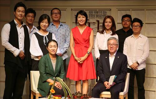 | △ 다담콘서트를 마친 후 김종덕 문화체육관광부 장관(오른쪽 앉은 이)과 김해숙 국립국악원장(왼쪽 앉은 이) 및 다담 출연진들. |