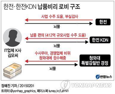(서울=연합뉴스) 방현덕 기자 = 렌터카, 아들 골프레슨비 등 맞춤형 뇌물을 한국전력과 자회사인 한전KDN 직원 등에게 제공하고 사업을 수주한 납품업자가 중형을 받았다.