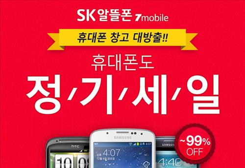 (서울=연합뉴스) 현윤경 기자 = SK텔링크가 온라인 직영숍 'SK알뜰폰 세븐모바일 다이렉트'에서 갤럭시S4 등 출시 15개월 이상 된 구형 휴대전화 단말기 6종을 할인 판매하는 행사를 마련한다.
