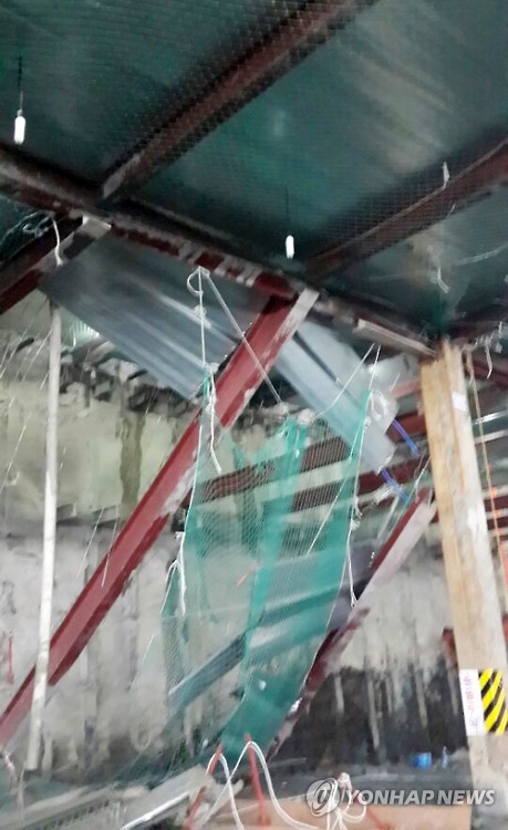 | △ 동대구복합환승센터 사고 현장 (대구=연합뉴스) 31일 콘크리트 타설 작업 중 바닥이 붕괴돼 12명의 부상자가 발생한 동대구복합환승센터 공사 현장. 2015.7.31 |