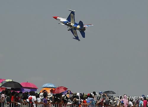 | △ 지난 2013년 방콕에서 열린 에어쇼에 등장한 태국 공군 소속 F-16기(EPA=연합뉴스 자료사진) |