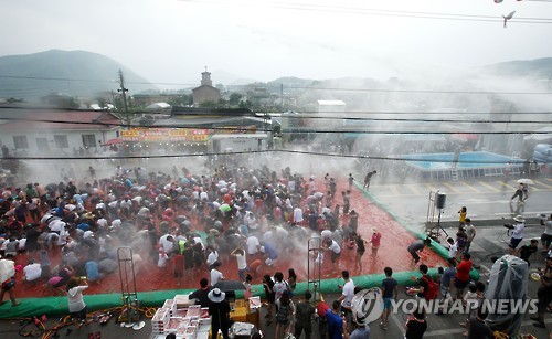 (화천=연합뉴스) 이상학 기자 = 강원 화천군 사내면 사창리에서 열린 '토마토축제'가 2일 오후 폐막했다.
