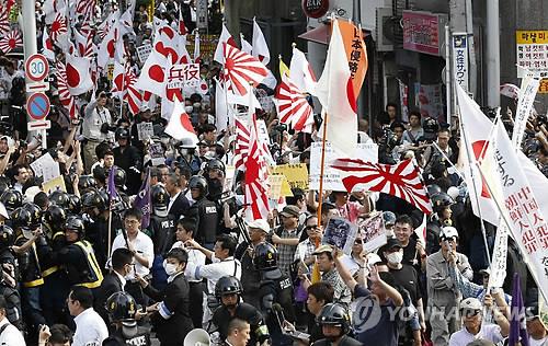 | △ 일본 도쿄에서 벌어진 혐한시위 모습(교도.연합뉴스.자료사진) |