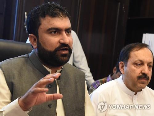 | △ 파키스탄 발루치스탄주의 내무장관인 사르프라즈 부그티(왼쪽)가 2일(현지시간) 보안군이 국제 테러조직 알카에다의 고위 지휘관 우마르 라티프를 사살했다고 발표하고 있다. 2015.8.3 (AFP=연합뉴스) |