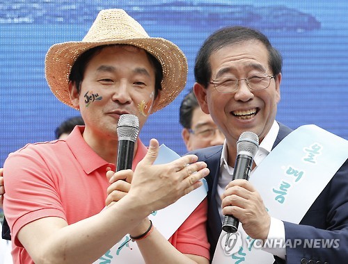 | △ 원희룡 제주도 지사(왼쪽)와 박원순 서울시장 (연합뉴스 자료사진) |