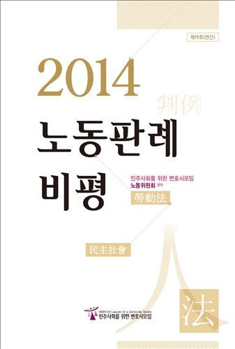 (서울=연합뉴스) 임미나 기자 = 민주사회를 위한 변호사모임(민변) 노동위원회는 '2014 노동판례비평'을 출간했다고 3일 밝혔다.