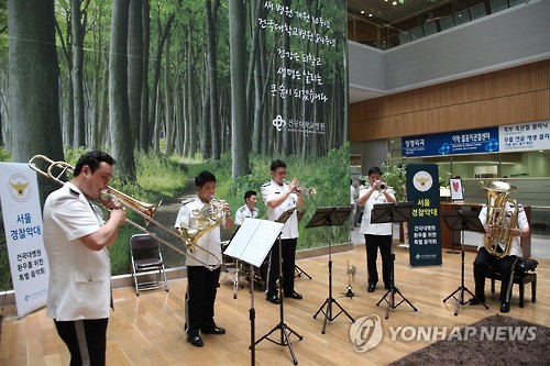병원 관계자는 "메르스로 위축됐던 병원에 환자들이 안전하게 오시라는 상징성을 담아 경찰악대를 첫 공연자로 선정했다"고 설명했다.
