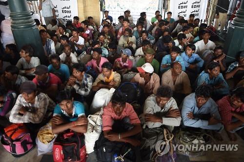 | △ 2일 파키스탄 남부 카라치 기차역에서 파키스탄 당국이 석방한 인도 어부들이 열차를 기다리고 있다.(AFP=연합뉴스) |