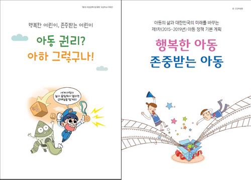 한편 복지부는 지난 5월에 수립한 '제1차 아동정책기본계획'의 내용을 아동들이 쉽게 이해할 수 있도록 소개하는 '아동 권리? 아하 그렇구나!', '내일의 꿈을 지키는 약속', '행복한 아동, 존중받는 아동' 등 책자 3종을 다음달 일선 학교에 배포한다고 밝혔다.