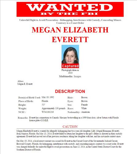 연방수사국(FBI)은 납치 등의 혐의로 에버렛을 수배 명단에 올렸다.