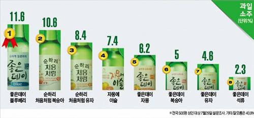 과일소주 선호도, 좋은데이 블루베리 1위