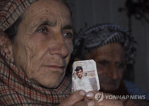 | △ 지난 3월 파키스탄 무자파라바드에서 사형수 샤프카트 후사인의 모친이 그의 사진을 들고 사형집행 중단을 호소하고 있다.(AP=연합뉴스) |