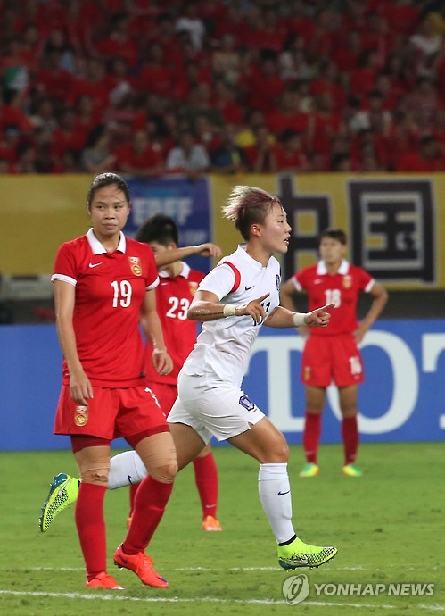 (우한=연합뉴스) 김태종 기자 = 중국전에서 결승골을 꽂은 정설빈(현대제철)이 2015 동아시아축구연맹(EAFF) 축구선수권대회(이하 동아시안컵) 일본전에서도 공격 선봉에 선다.