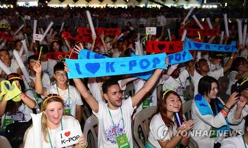 좌석을 가득 메운 외국인 관광객들은 '아이 러브 케이-팝'이라고 적힌 종이를 좌우로 흔들어대며 환호했다.