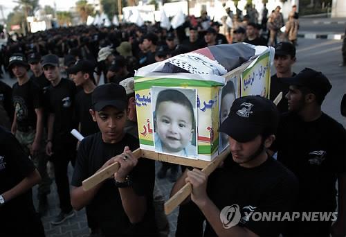 (서울=연합뉴스) 양태삼 기자 = 팔레스타인인 거주 지역에 방화로 추정되는 불이 나 생후 18개월 된 아기 1명이 숨진 사건이 발생한 지 나흘만인 4일(현지시간) 이스라엘 보안 당국이 유대교 급진파 조직원 3명을 체포했다.