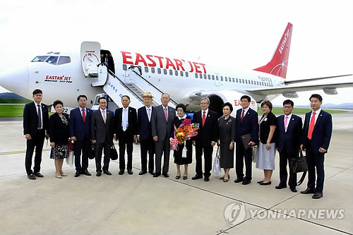 이희호 여사는 이날 오전 10시께 서울 김포공항에서 18명의 수행원들과 함께 이스타항공 전세기를 타고 3박 4일 일정으로 방북길에 올랐다.