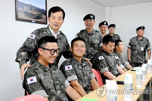 (서울=연합뉴스) 김귀근 기자 = 한민구 국방부 장관은 5일 지난해 윤일병 폭행사망 사건이 발생한 육군 28사단을 순시하고 병사들과 간담회를 했다고 국방부가 밝혔다.