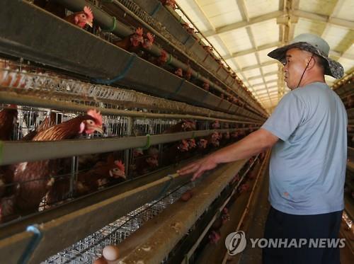 | △ (김제=연합뉴스) 임채두 기자 = 5일 오후 전북 김제시 용지면 용수리에서 양계장을 운영하고 있는 조덕곤(54)씨가 축사 내부를 둘러보고 있다. 2015.8.5 doo@yna.co.kr |