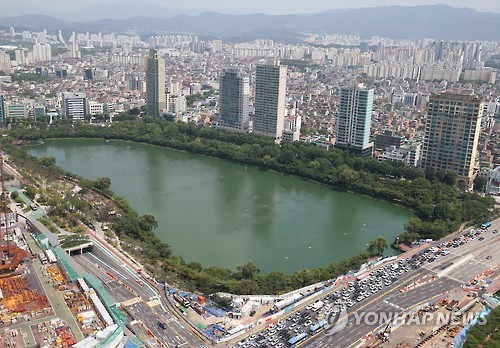 | △ "석촌호수 수위저하, 9호선·제2롯데 공사 영향 컸다" (서울=연합뉴스) 한종찬 기자 = 서울시는 한국농어촌공사에 의뢰해 석촌호수 수위저하 원인을 조사한 결과 호수 수위는 제2롯데월드, 지하철 9호선, 주변 대형 신축건물 8곳의 공사 영향을 복합적으로 받은 것으로 분석됐다고 6일 발표했다. 사진은 이날 오후 서울 석촌호수 전경. |