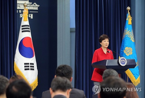 | △ 박 대통령, 대국민 담화 발표 (서울=연합뉴스) 이정훈 기자 = 박근혜 대통령이 6일 오전 청와대 춘추관 브리핑룸에서 대국민 담화를 발표하고 있다. |