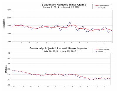 변동성을 줄여 추세를 보여주는 4주 이동평균 건수는 26만8천250건으로 한주 전보다 6천500건 감소했다.