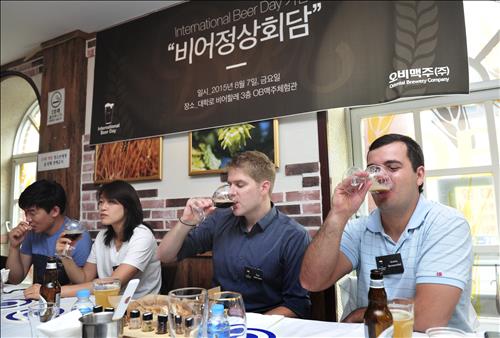 (서울=연합뉴스) 인교준 기자 = 오비맥주는 7일 낮 서울 동숭로 대학로 비어할레 3층의 오비맥주 체험관에서 '비어(Beer) 정상회담'을 열었다.