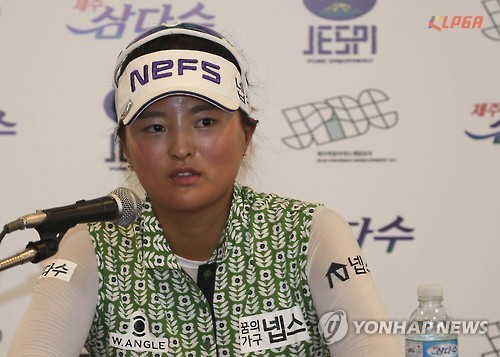 | △ 인터뷰하는 고진영 (서울=연합뉴스) 7일 제주시 오라컨트리클럽에서 열린 한국여자프로골프(KLPGA) 투어 제주 삼다수 마스터스 1라운드를 마친 고진영이 인터뷰를 하고 있다. 2015.8.7 << KLPGA 제공 >> photo@yna.co.kr |