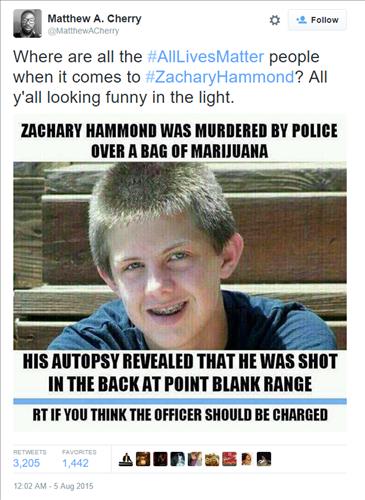 7일(현지시간) 워싱턴포스트 등 미국 언론에 따르면, 백인 청년 재커리 해먼드(19)는 지난달 26일 사우스캐롤라이나 주 세네카의 한 패스트푸드 매장 주차장에서 여자 친구 토리 모튼과 데이트를 즐기던 중 경찰의 총에 맞아 사망했다.