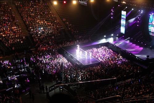 8일(현지시간) 미국 뉴저지 주 뉴어크의 푸르덴셜 센터를 가득 채운 관객들은 소녀시대와 틴탑, 빅스(VIXX), AOA 등 한류스타들이 뿜어내는 춤과 노래의 열기로 무더위마저 잊었다.
