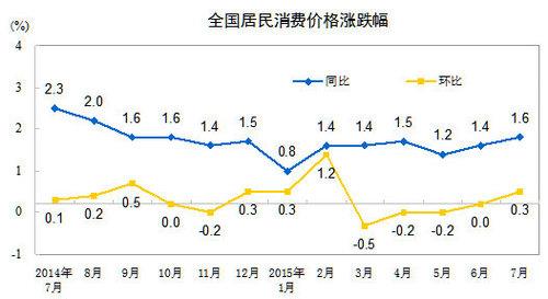 중국 국가통계국은 9일 중국의 7월 소비자물가가 작년 동기 대비 1.6% 상승, 6월의 1.4%에 비해 소폭 올랐다고 발표했다. 7월 상승폭은 올들어 가장 높은 수치다.