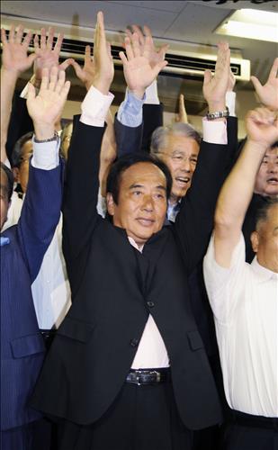 | △ 9일 사이타마(埼玉)현 지사 선거에서 승리한 우에다 기요시(上田淸司) 현 지사가 만세를 하는 장면(교도.연합뉴스) |