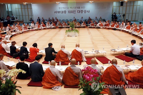 | △ 금권선거 폐해가 심각한 것으로 비판받는 대한불교 조계종 총무원장 선거제도를 개정하는 방안이 추진된다. 사진은 지난달 29일 서울 송파구 석촌동 불광사에서 열린 '종단혁신과 백년대계를 위한 사부대중 100인 대중공사'에서 '서의현 전 총무원장 재심 결정을 통해 본 종단개혁'을 긴급 의제로 논의하는 모습. (연합뉴스 자료사진) |
