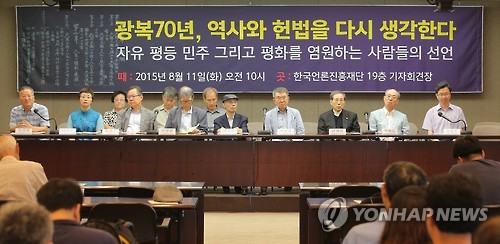 (서울=연합뉴스) 임기창 기자 = 광복 70년을 맞아 헌법 정신 회복과 친일잔재 청산, 민주주의와 인권 회복 등을 촉구하는 지식인 선언이 발표됐다.