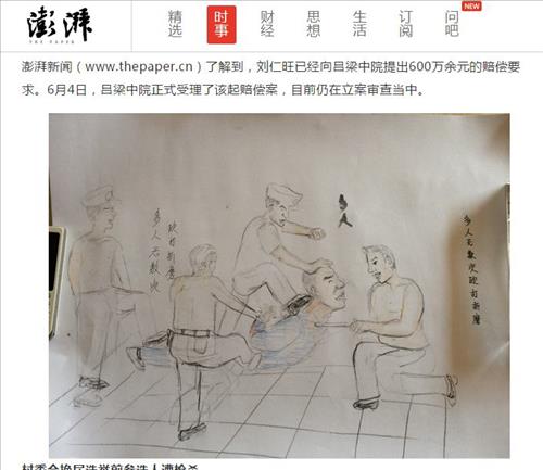 최근 산시성 뤼량(呂梁)시 중급법원을 상대로 600만 위안의 손해배상 소송을 낸 그는 처음 체포됐을 당시 경찰의 가혹행위를 못 이겨 저지르지 않은 죄를 자백했다면서 당시 받은 고문을 묘사한 그림을 최근 언론에 공개했다.
