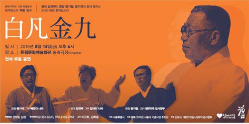 14일 오후에는 은평문화예술회관 숲속 극장에서 백범 김구 선생의 '백범일지'를 바탕으로 한 판소리 '백범 김구'가 공연된다. 왕기석 명창과 왕기철 명장, 임진택 명장이 3시간 동안 진행되는 1∼3부 공연에서 백범 선생 역을 맡는다. 공연 관람은 무료다. 전화(☎ 02-351-6520)로 신청하면 좌석을 배정받을 수 있다.