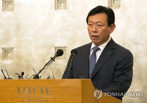 | △ 기자회견하는 신동빈 롯데 회장 (서울=연합뉴스) 윤동진 기자 = 롯데그룹 신동빈 회장이 11일 오전 서울 중구 롯데호텔에서 최근 불거진 경영권 분쟁과 관련해 기자회견을 하고 있다. 2015.8.11 mon@yna.co.kr |