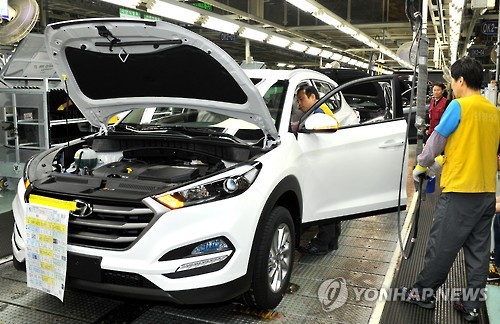 | △ 14일 임시공휴일에 현대자동차를 비롯 대기업 대부분이 휴무에 들어간다. 사진은 신형 투싼을 생산하는 현대자동차 공장 내부.<<연합뉴스 DB>> |