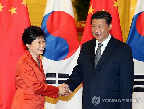 | △ 박근혜 대통령과 시진핑 중국 국가주석이 2014년 11월 10일 중국 베이징 인민대회당에서 열린 한-중 정상회담에서 악수하고 있다. |