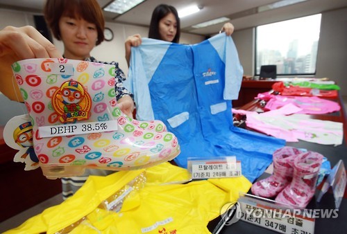 불량제품에서는 장시간 노출될 경우 생식기능이나 신체 발달기능에 영향을 줄 수 있는 프탈레이트 가소제와 납 등이 기준치를 초과해 검출됐다.