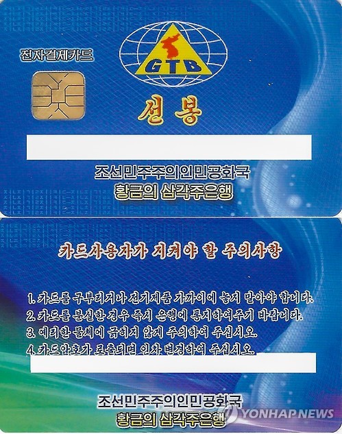 (서울=연합뉴스) 임은진 기자 = 북한의 황금의삼각주은행이 전자결제카드 '선봉'을 발행했다고 북한경제 전문 웹사이트인 '노스코리언 이코노미 워치'가 12일 보도했다.