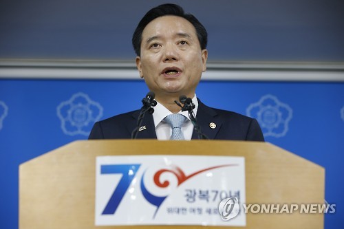| △ 광복 70주년 특별 사면 발표 (서울=연합뉴스) 황광모 기자 = 김현웅 법무부 장관이 13일 오전 서울 세종로 정부서울청사에서 임시국무회의에서 의결된 광복 70주년 특별 사면을 발표하고 있다. |