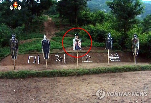 북한 조선중앙TV가 전날 오후 방영한 '조선인민군 군인들 신천박물관 참관·복수 결의모임 진행' 소식 영상에는 군인들의 실탄 사격에 등장하는 5명의 과녁 중 정중앙에 박근혜 대통령의 사진이 붙어 있는 장면이 나온다.