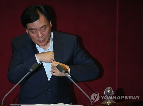 | △ 신상발언 마친 박기춘 (서울=연합뉴스) 진성철 기자 = 체포동의안이 상정된 박기춘 의원이 13일 국회 본회의에서 신상발언을 마친 뒤 안경을 넣으며 눈물을 글썽이고 있다. zjin@yna.co.kr |