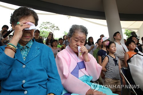 '가시리 가시리잇고 바리고 가시리잇고' 위안부로 끌려간 소녀의 구슬픈 노랫가락이 행사장에 울려 퍼지자 객석 곳곳에서 젖은 눈가를 훔치는 모습이 보였다.