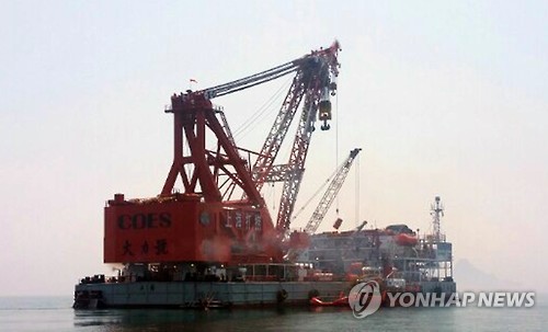 (진도·세종=연합뉴스) 조근영 성혜미 기자 = 세월호 선체를 인양할 작업선이 진도 현장에 도착하는 등 인양 준비 작업이 시작됐다.