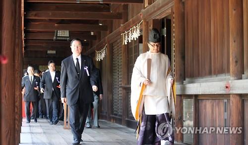 아베 신조(安倍晋三) 일본 총리는 직접 참배하지 않았으나 측근인 하기우다 고이치(萩生田光一) 자민당 총재 특보를 시켜 공물의 일종인 다마구시(玉串·물푸레나무 가지에 흰 종이를 단 것)료를 개인 돈으로 내서 '성의'를 표시했다.